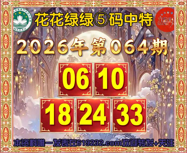 064期:【花花绿绿】 🌅⑤码中特🌅【06.10.18.24.33】开:00准